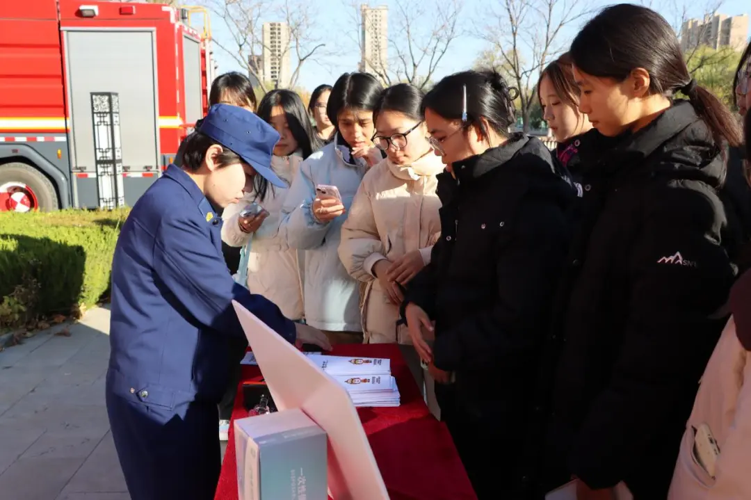 活动伊始,来自沧州市消防救援支队的教官结合冬季校园用火用电高频风险,面向师生讲解消防安全常识及注意事项。他们手持灭火器、消防水带等器材,手把手演示操作要领。现场师生围拢学习,不时点头记录。随后,师生们轮番上阵,实操使用消防水带搭建输水线路、对准模拟火盆精准灭火。宣传展台前,知识问答、印章集赞、Q版贴纸等新颖形式让消防安全知识入脑入心。师生们有序参与,或认真聆听讲解,或亲手实操演练,或积极抢答问题。同学们纷纷表示:“以前只在视频里看过这些消防知识,今天亲手操作才真正掌握了实用技能。”
