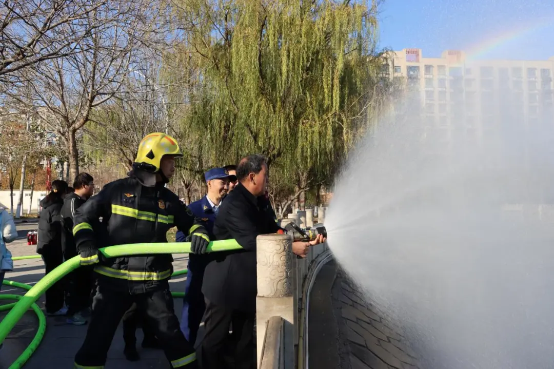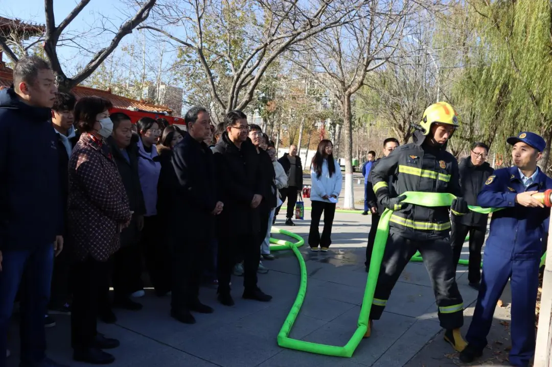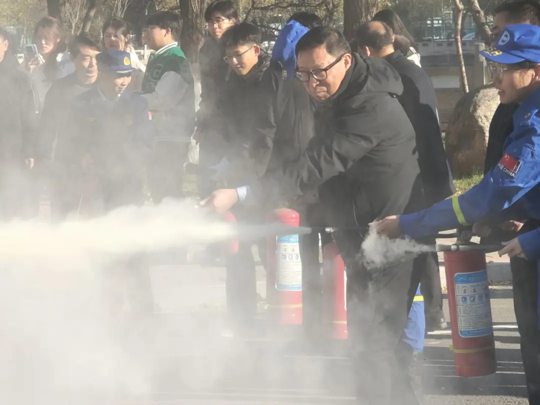 为提高师生消防意识,共建平安校园,11月20 日,在我校“消防宣传月”期间,校安全工作处联合沧州市消防救援支队开展了面向全校师生的消防宣教及演练活动,校领导云电军、范小振、高颖、周振平、朱蓬华参加。各学院、处室分批次参与,千余名师生沉浸式上了一堂消防安全“必修课”。